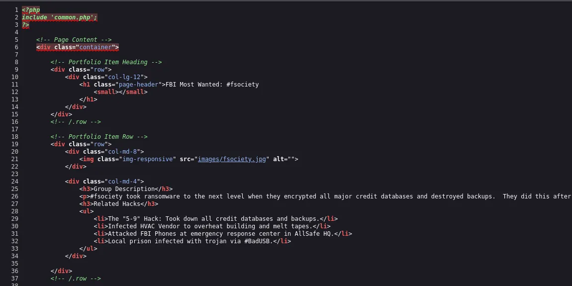 Видно лише HTML-код і те, що є ще файл common.php. Поки що подивимося інші файли.