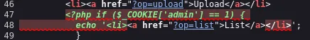Тут іде перевірка на наявність куки admin, що дорівнює 1.