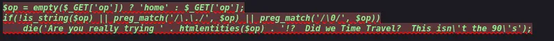 Вам дійсно варто навчитися програмувати, один із GET-параметрів досі вразливий. Більшість подумає, що це просто призведе до розкриття вихідного коду, але існує ланцюжок, який забезпечує віддалене виконання коду.*