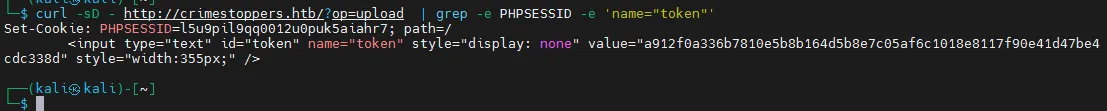 curl -sD - http://10.10.10.80/?op=upload | grep -e PHPSESSID -e 'name="token"'