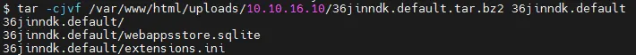 tar -cjvf /var/www/html/uploads/10.10.16.10/36jinndk.default.tar.bz2 36jinndk.default