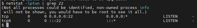 Нам не вистачає прав. Але якщо виконаємо команду netstat, побачимо, що SSH ще доступний через IPv6.