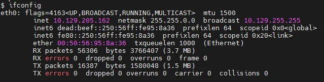 Через ifconfig отримуємо IPv6-адресу.