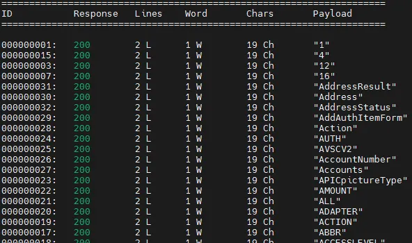 wfuzz дуже швидко відпрацював і показав нам такий результат.