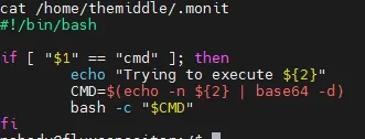 З виводу команди видно, що через sudo ми можемо запускати скрипт .monit за шляхом /home/themiddle/. Давайте подивимося на цей скрипт.