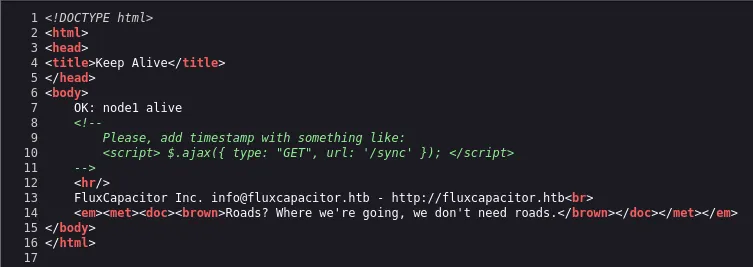 OK: Node1 жива. Це все, що ми отримуємо. Переглянувши вихідний код сторінки, знаходимо коментар.