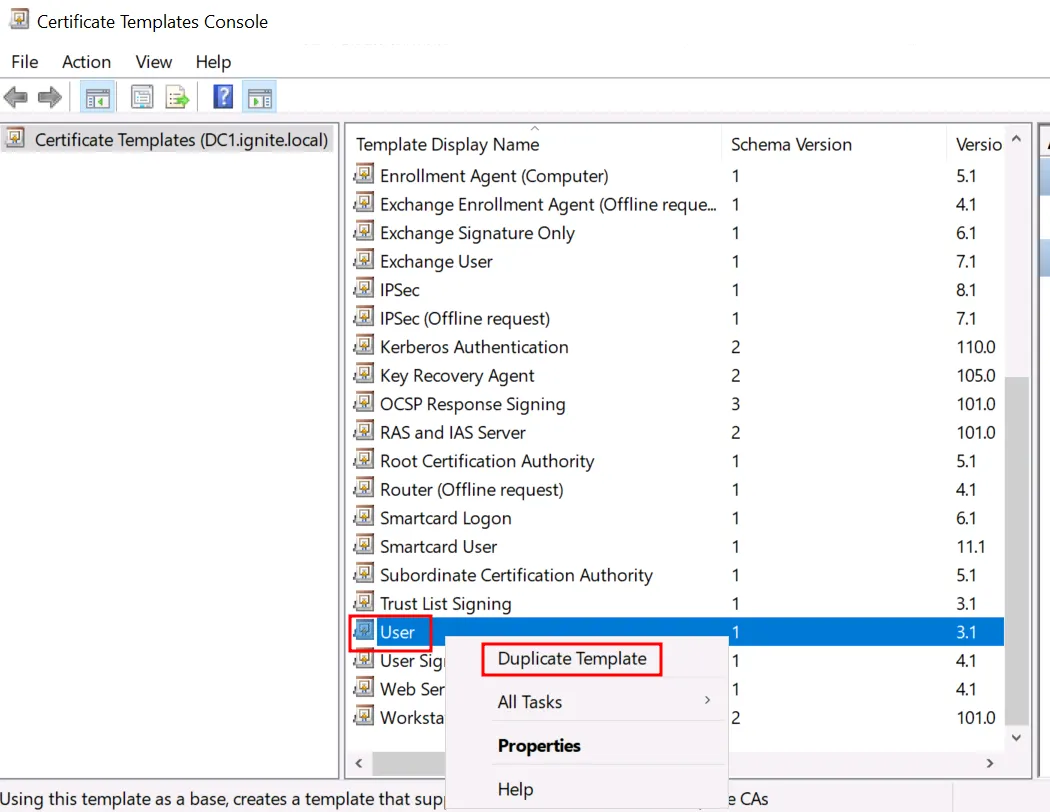 - Потім натисніть правою кнопкою миші на Certificate Templates → виберіть Manage.