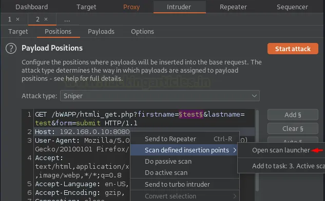 Визначення точок вставки в Burp Intruder