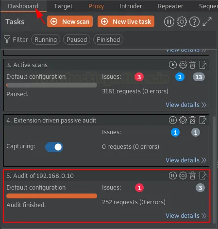 Щойно ми це зробимо, завдання з аудиту з’явиться у списку на вкладці «Dashboard».