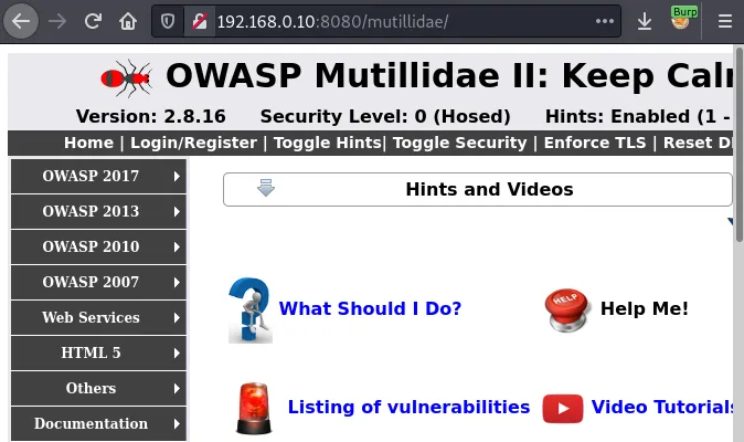 Увімкніть Proxy Service у браузері, а потім перейдіть на вразливий додаток OWASP Mutillidae.