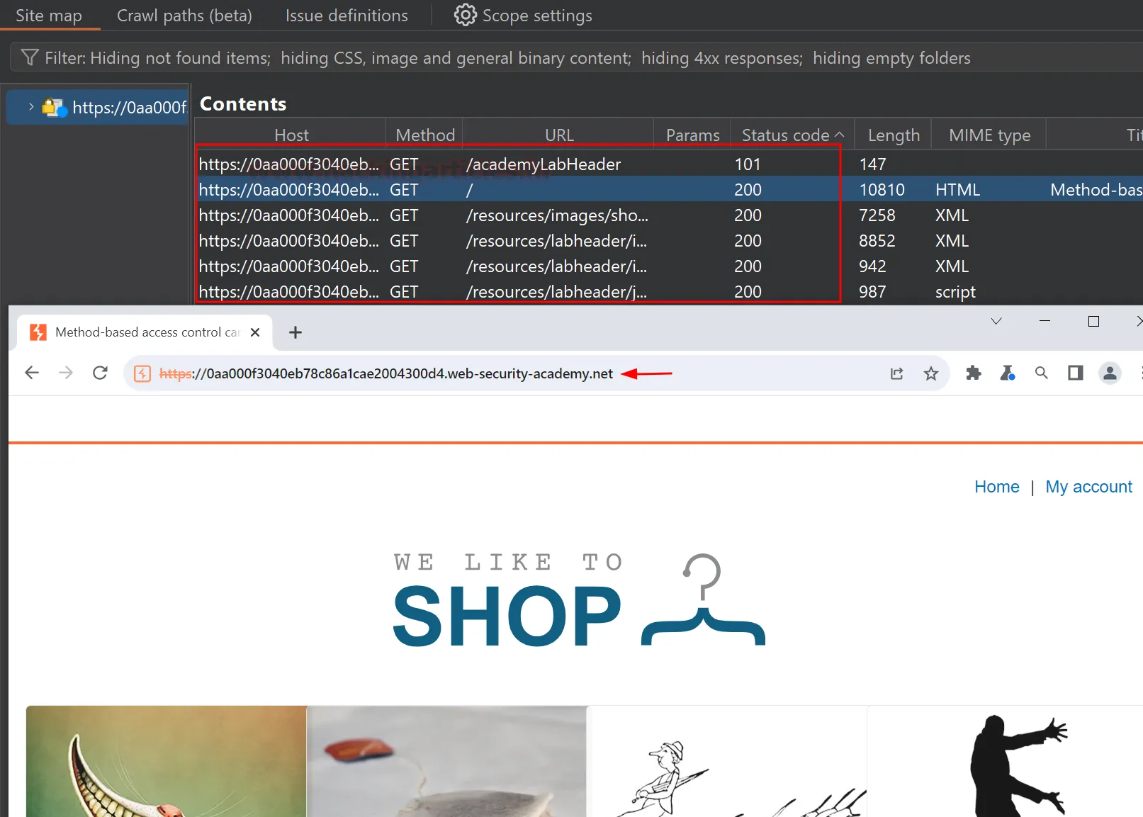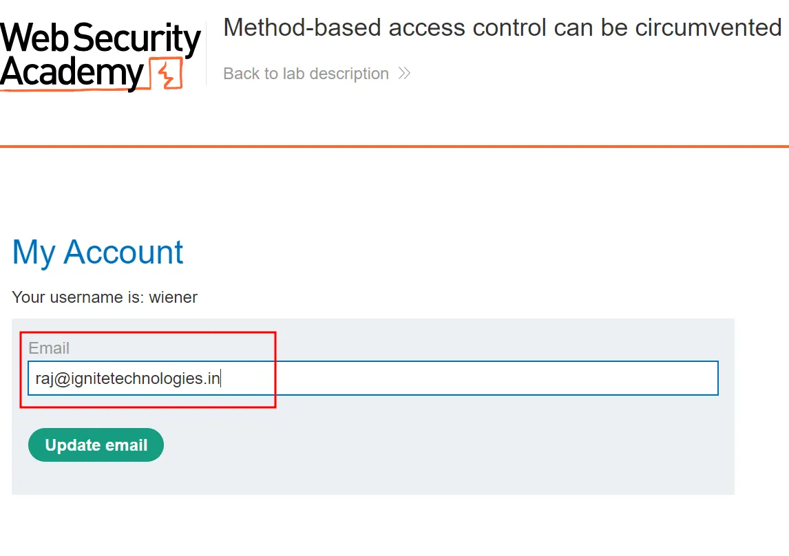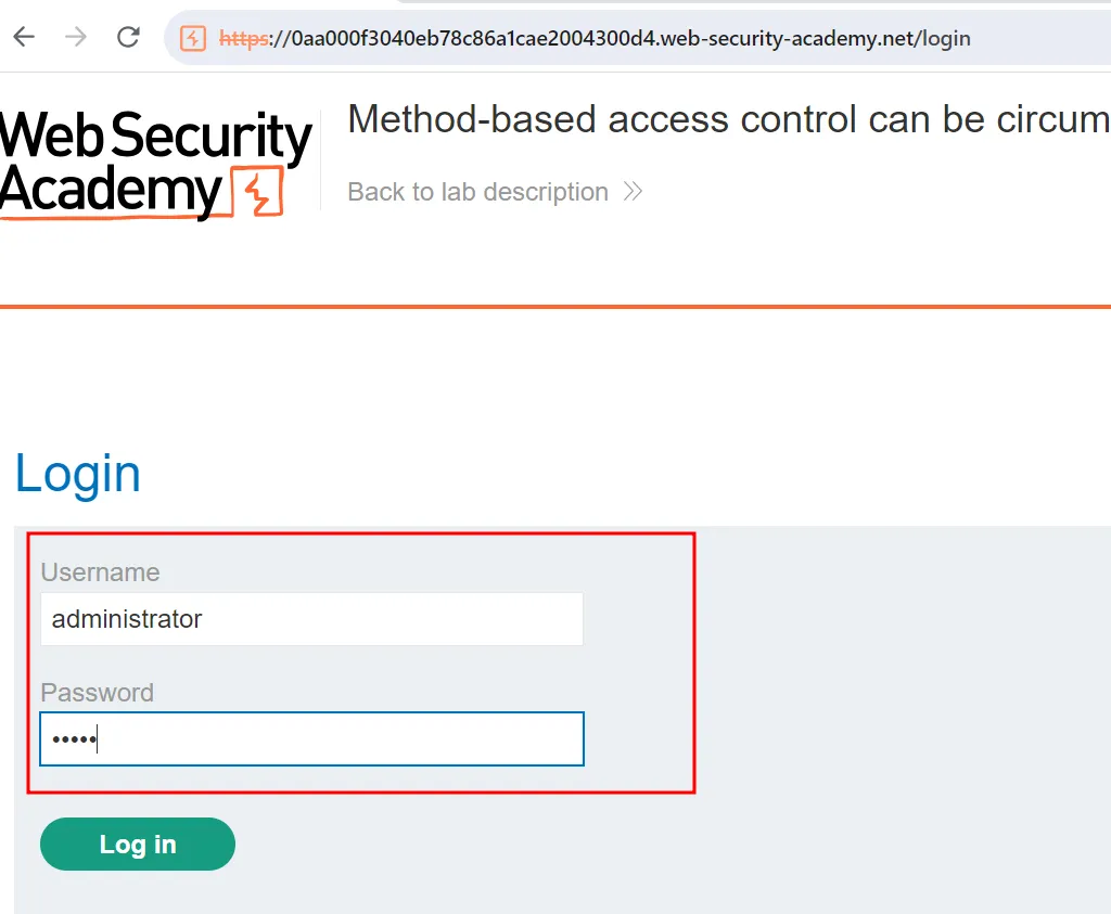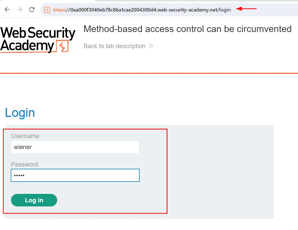 Проведемо коротку демонстрацію для кращого розуміння роботи інструменту. Для цієї практики ми скористаємося готовою лабораторією від PortSwigger: «Method-based access control can be circumvented» (Обхід контролю доступу на основі методів). Натисніть «Access the lab» і відкрийте додаток у браузері.