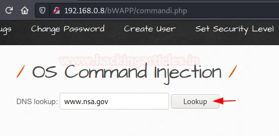 Востаннє перевірте свій bWAPP. Перейдіть до розділу OS Command Injection, натисніть кнопку «hack» і перехопіть запит.
