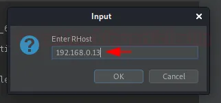 Коли ми це зробимо, з’явиться вікно для введення значення RHost — вкажіть тут IP-адресу вашої Kali Linux.