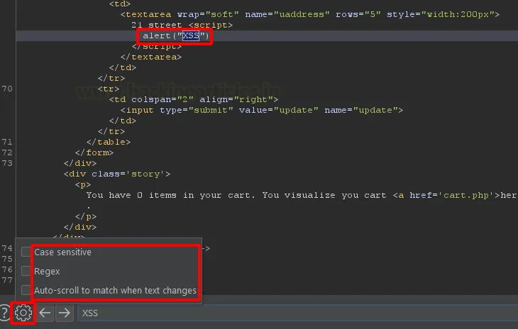 В обох секціях Repeater (запит і відповідь) знизу розташована панель пошуку. Оскільки відповідь сервера зазвичай містить весь HTML-код сторінки, вона може бути дуже об’ємною, що ускладнює пошук конкретних ключових слів. Це стає проблемою, коли необхідно перевірити, чи відобразилися передані нами параметри у відповіді сервера (reflected parameters).