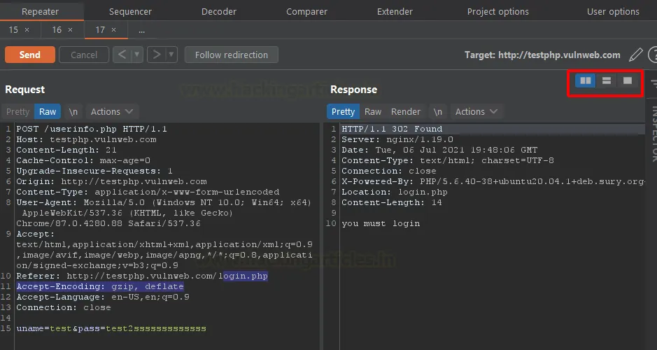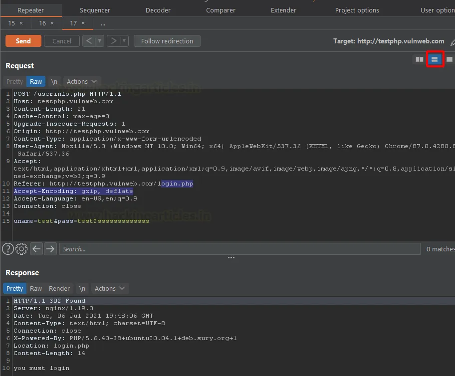 Burp автоматично змінить метод і перенесе параметри з URL у тіло запиту (body) згідно з нормами POST-запитів.