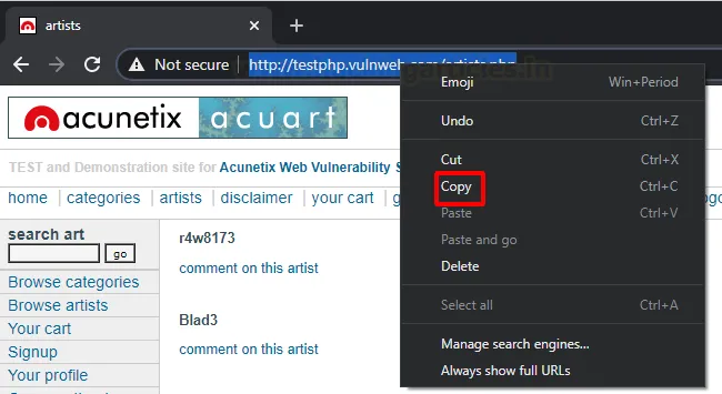 У середовищі тестування на проникнення трапляються ситуації, коли необхідно перевірити відповідь конкретної URL-адреси без фактичного перехоплення самого запиту. Також можливий сценарій, коли ви виявили певну вразливість, але не маєте відповідного запиту в історії. У такому разі зазвичай доводиться переходити в HTTP History, шукати потрібний запит і надсилати його в Repeater. Цей процес можна скоротити, просто використавши URL-адресу. У нашому прикладі ми копіюємо URL безпосередньо з веббраузера.